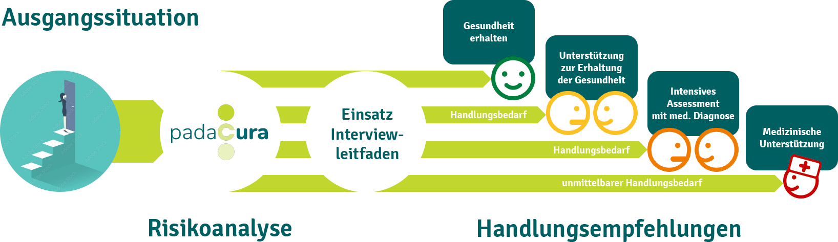 Das padaCura-Ergebnis hilft Ihnen mit den richtigen Förderketten dabei, die nächsten Schritte in die richtige Richtung zu lenken.